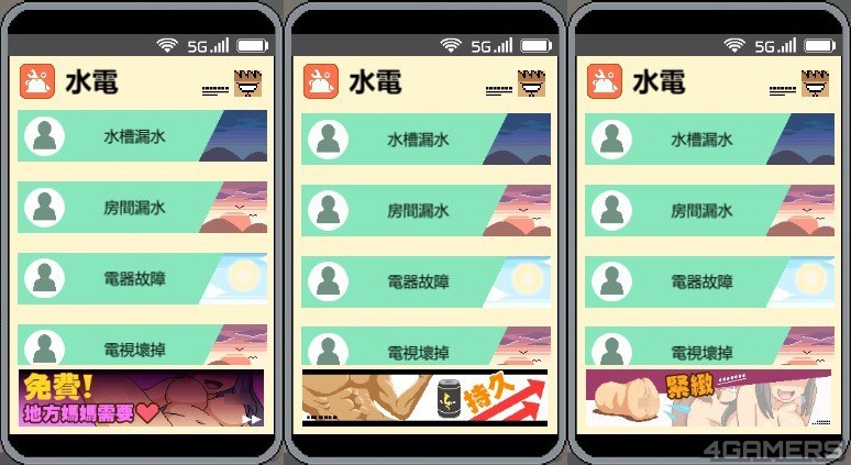 当然,基于本作为台湾成人游戏,游戏中也少不了玩家熟悉的成人迷因,光是打开手机确认工作,你便能发现许多绅士们熟悉的成人广告。