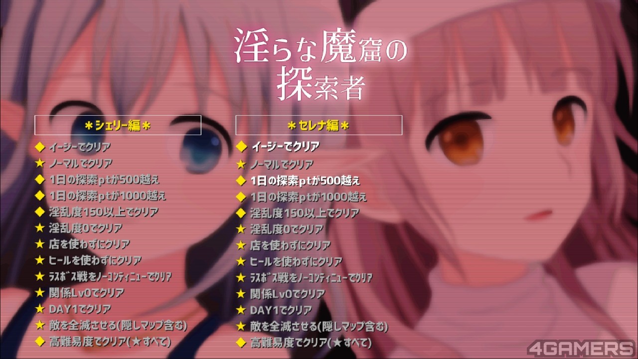 本作除了挑战每轮高分纪录外,另外也有多个结局可供玩家挑战。这些结局除了普通的战败过多导致的堕落结局,以及正常通关的好结局外,玩家在城镇或迷宫触发 H 事件时也会累积与村内 NPC 或迷宫内怪物等的羁绊等级,会影响玩家本轮通关的结局。