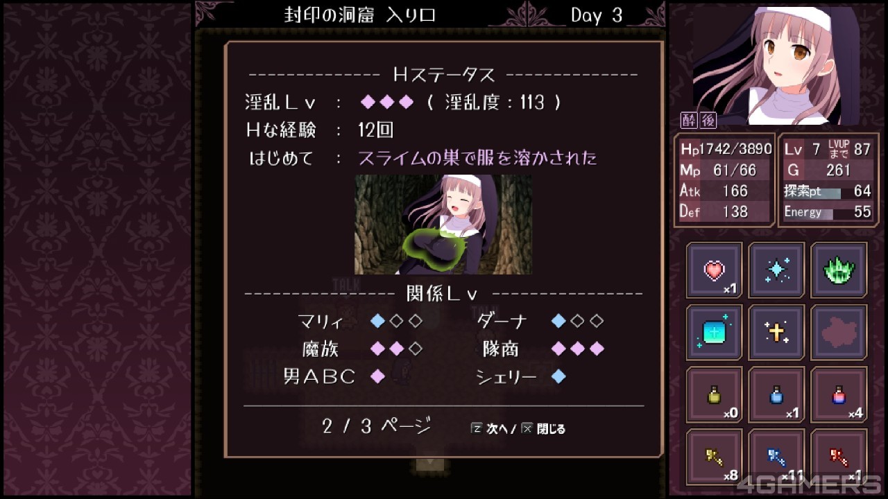 除了发生在女主角身上的 H 事件外,村长与商人两位 NPC 也有对应的 H 事件可以触发,但她们的事件链主要还是以讲述世界观与剧情为主,本作的剧情也相当完整,喜爱本作的玩家不妨深入品味。