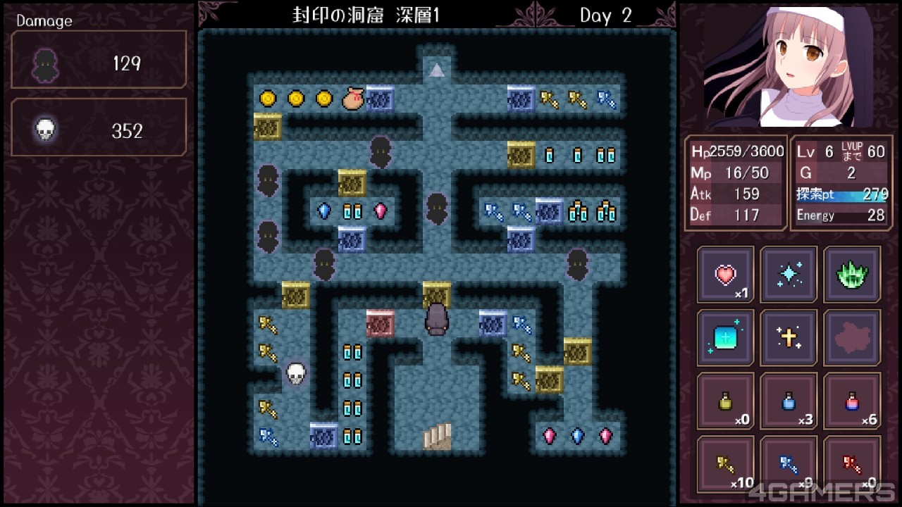 因此玩家需要在每一层地图中做好路线规划,思考资源交换比例,才能在合理的代价下尽可能突破更多迷宫、击破怪物、收集宝物,得到高分。
