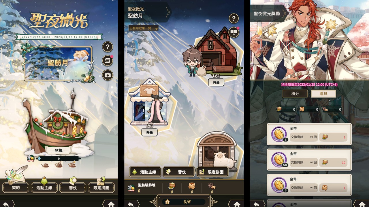 玩家通关活动关卡将可获得活动积分道具「圣舫装饰堆」。累积「圣舫装饰堆」后能至兑换页面换取送礼道具「交换的心意」,以及其他丰富奖励。在活动中推进剧情,与眷属们一同度过闪闪发光的冬季吧!