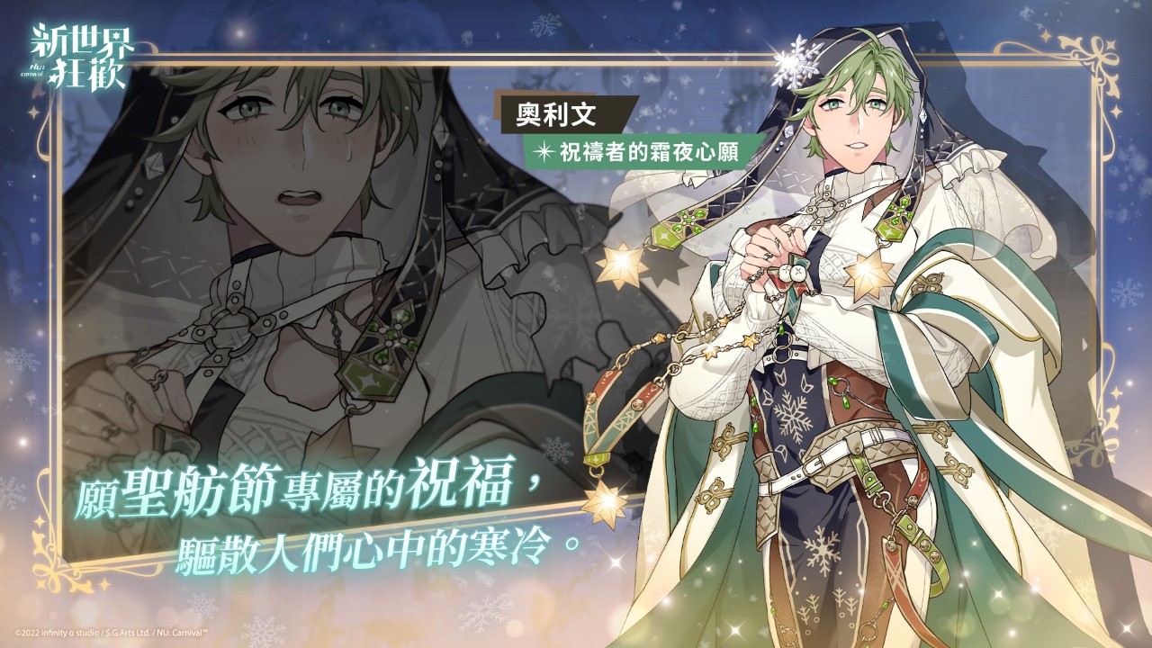 成人 BL 手游《新世界狂欢》大型限定活动「圣夜微光」正式登场。本次特别推出了三位角色的★SSR 限定装扮,与眷属们一起在卡莱因大陆度过美好的冬季时光吧!