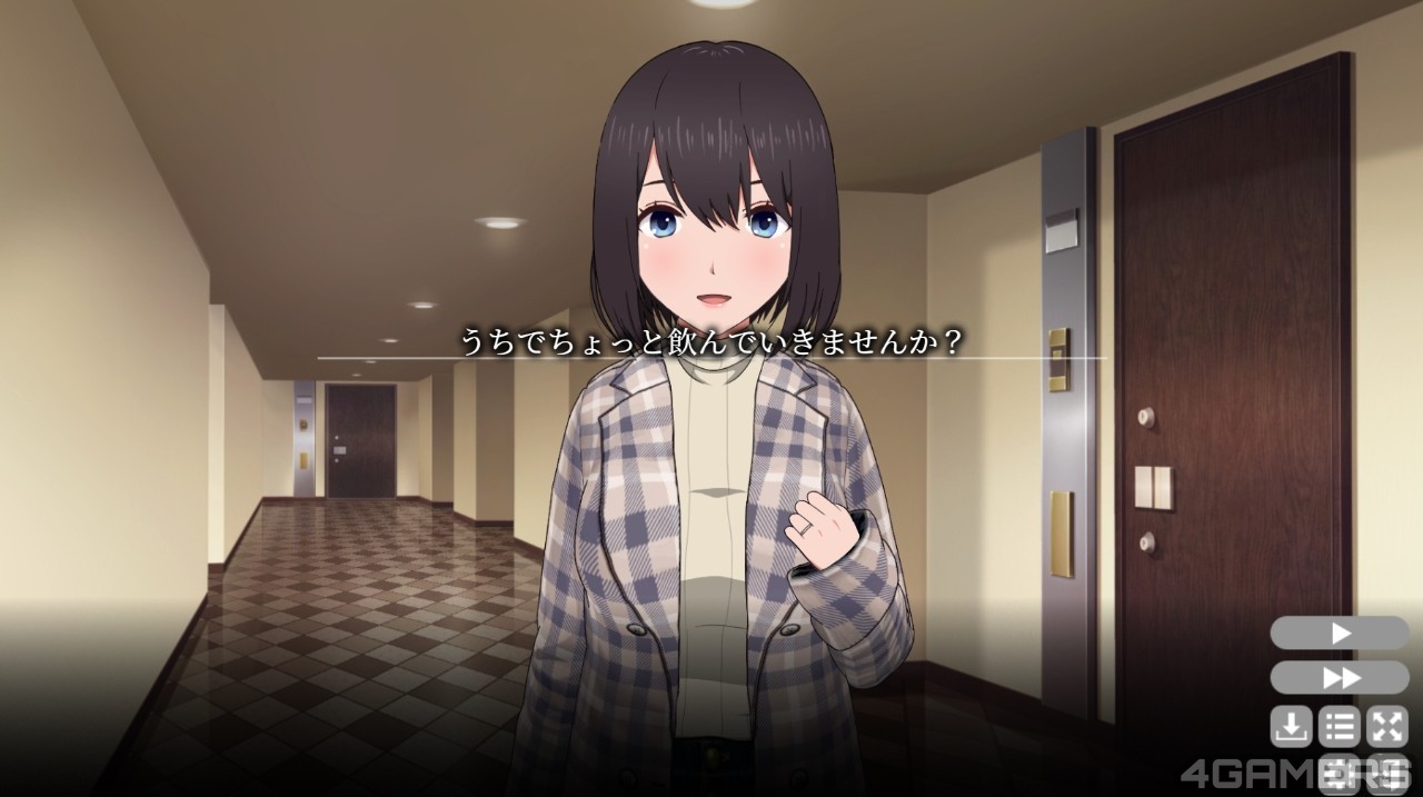 经过 60 多日的对话与攻略,第三章的结尾在主角邀请苍井太太到家里品酒,终于用上了「假装当女友」的练习藉口,有了成人游戏该有的互动玩法。
