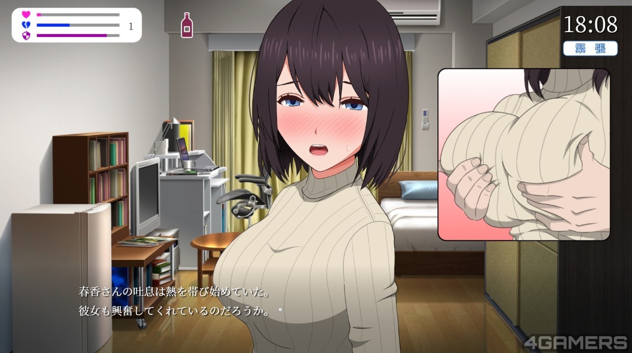 于是,时间管理大学生主角暗自决定了 NTR 目标,一定要夺走苍井太太。就这样,玩家在进入苍井太太家中没多久,在时机成熟的一刻提出了约会的请求进入了第三章,双方的进展步调也随之加速,相信很快就可以滚到床单,製作一个又一个水乳交融的奶油派…
