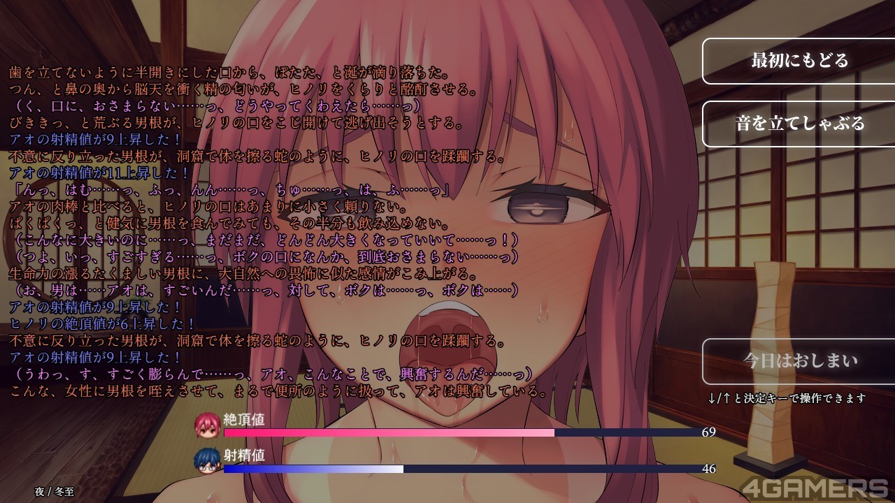 除了「大人值」之外,同时因为「幽世村」的特殊环境,也会增加「发情值」(毕竟会看到一堆香豔的场景,应该没几个人忍得住)